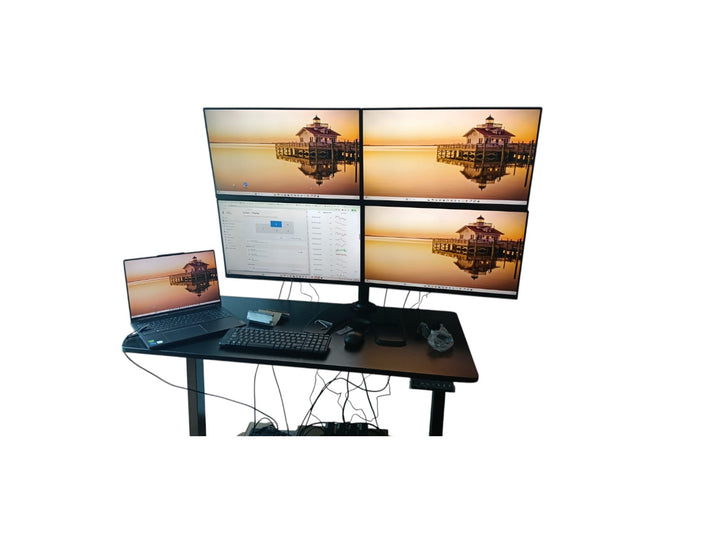 Free Standing Dual LCD Monitor Fully Adjustable Desk Mount Fits 4 Screens up to 27 inch, 6kg. Weight Capacity per Arm