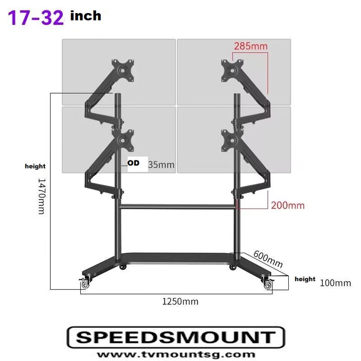 (AVRST) 17-32inch multi TV monitor stand SPEEDSMOUNT mobile cart height adjustable
