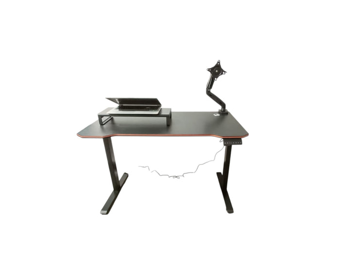 DS110-2 compatible with sit stand desk and monitor mobile cart below