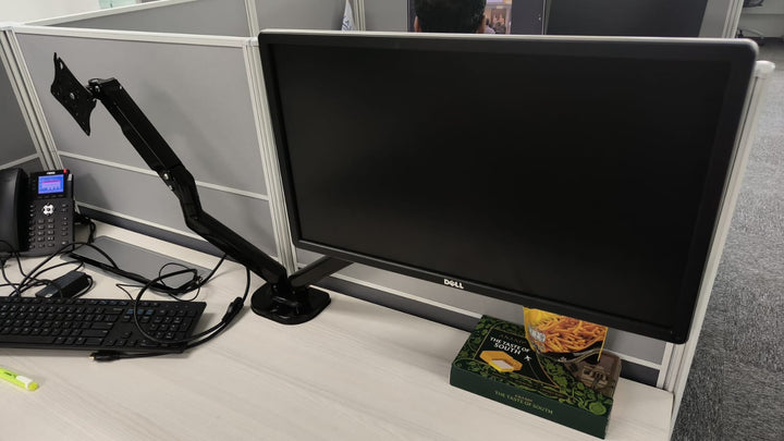 Mechanism: Uses a sealed gas cylinder (like an office chair lift) to balance the monitor’s weight.